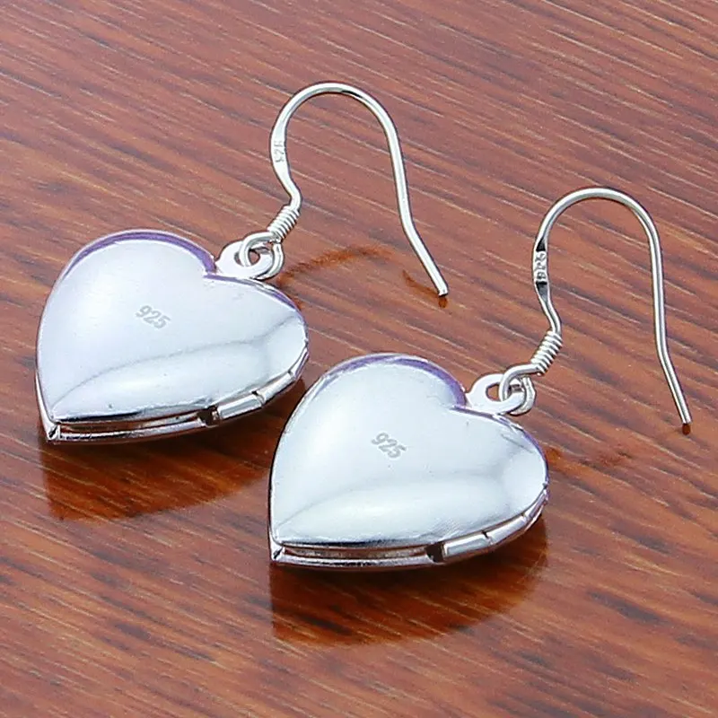 Отзывы о Абсолютно новый 925 Серебряный Гладкий сердце свисающие серьги для женщин серебро