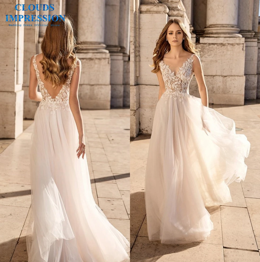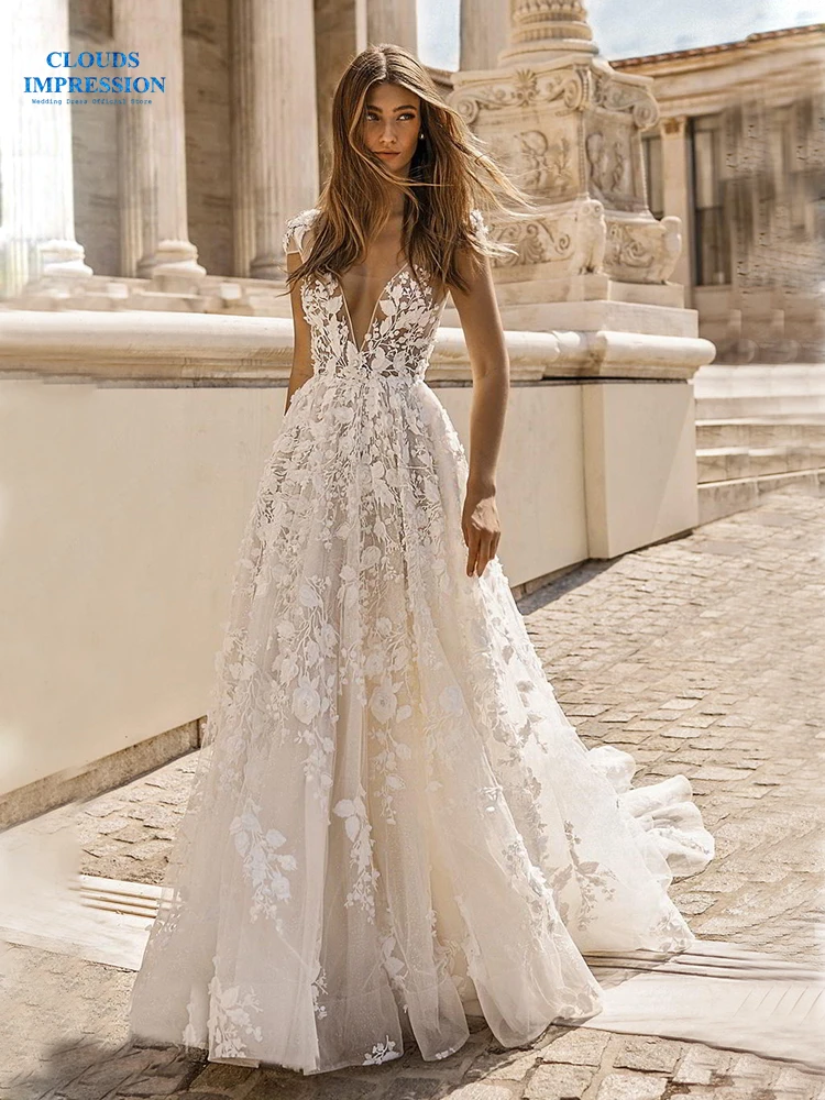 Купить Женское свадебное платье с открытой спиной белое кружевное глубоким v-образным