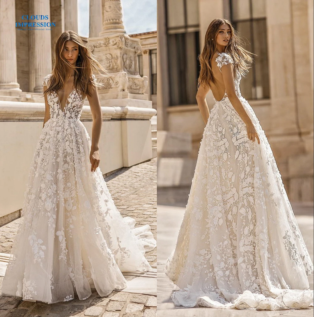 Отзывы о Женское свадебное платье с открытой спиной белое кружевное глубоким v-образным