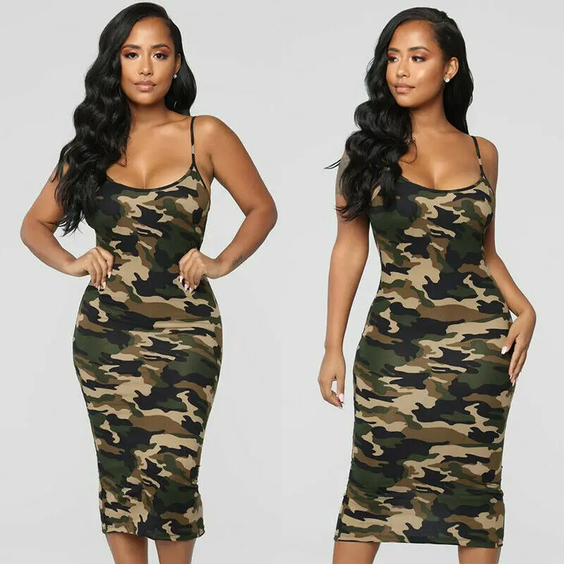 Купить Женское пикантное камуфляжное платье без рукавов на бретельках женское