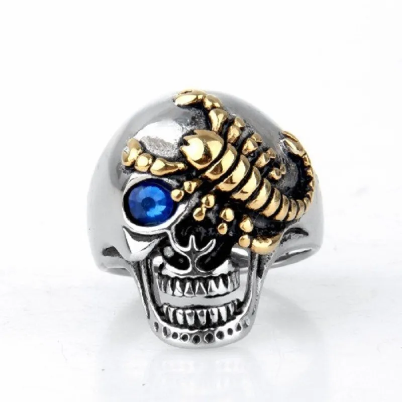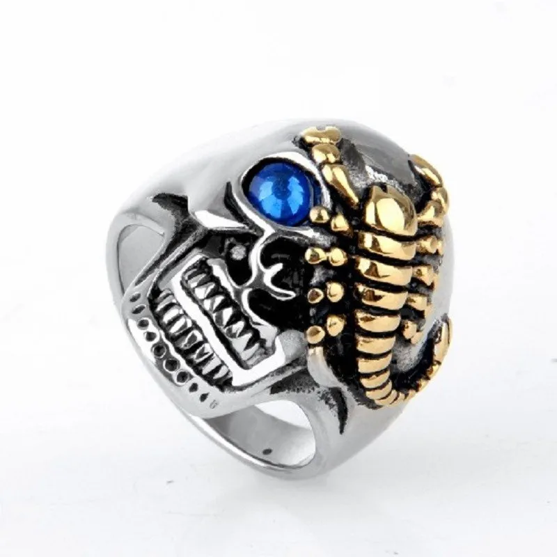 Новый мужской синий CZ глаз ЗОЛОТОЙ СКОРПИОН череп серебряного цвета из - купить
