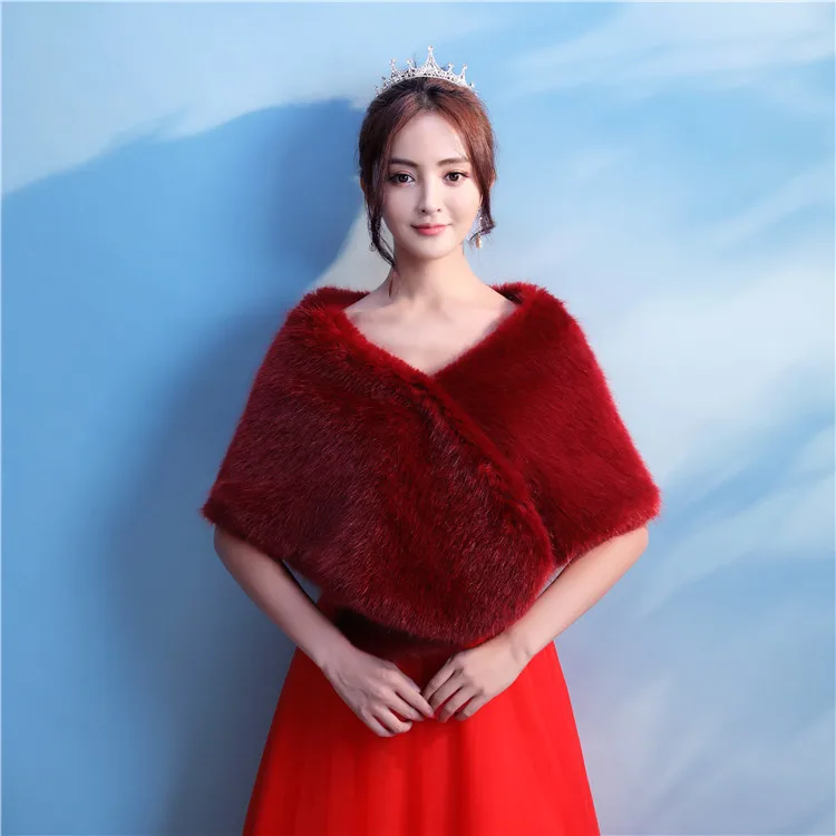 Купить Плотные теплые Свадебные палантины бордового цвета из искусственного меха