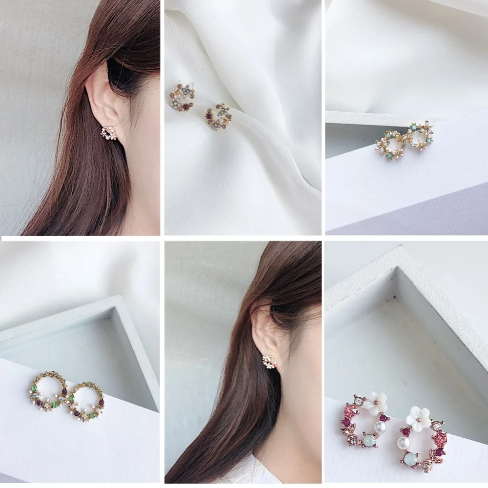 Отзывы о Модные милые женские серьги-гвоздики в Корейском стиле стразы с цветами и