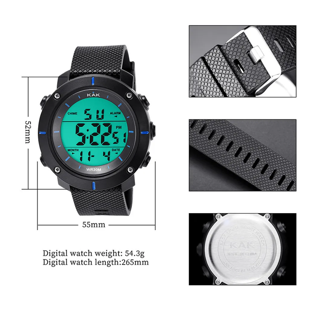 Описание продукта Модные высококачественные мужские водонепроницаемые электронные часы серии 30 м, мужские модели