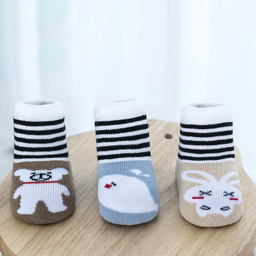 Autumn Winter Newborn Indoor Floor Sock 0-3Years Baby Socks 3 Pairs Soft Socks Newborn Toddler Cotton Thick Loose Mouth Cartoon