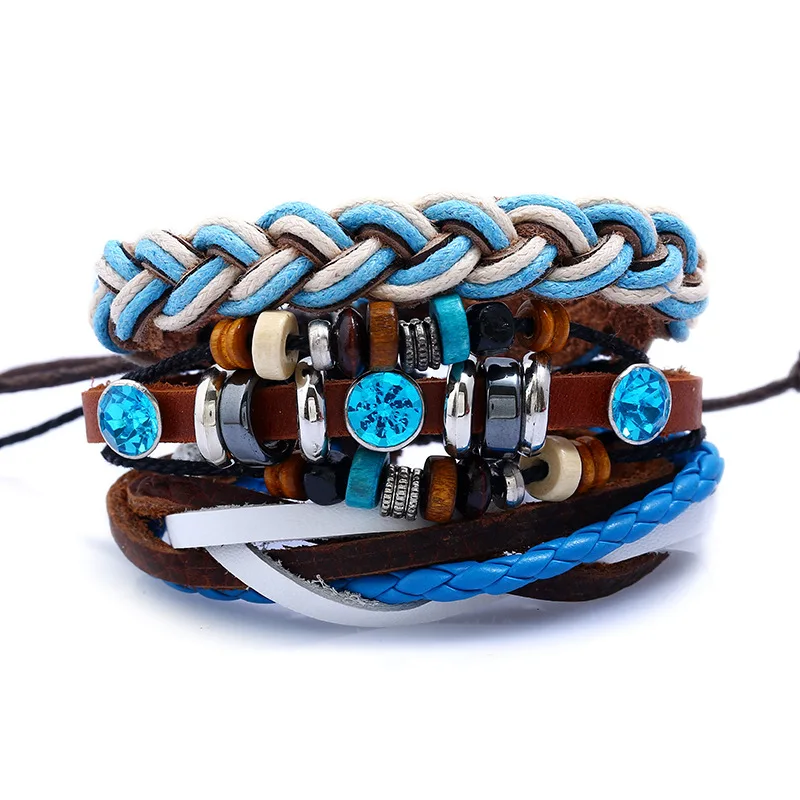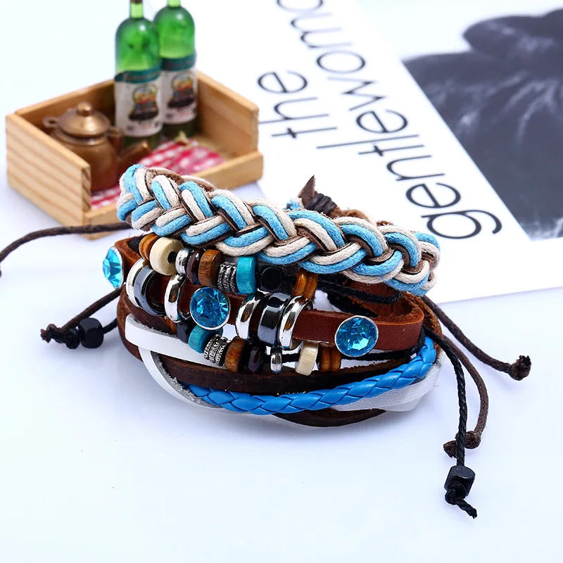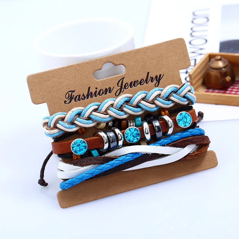 3 шт./компл. панк коричневая оболочка кожа классический цвет синий белый плетеный - купить