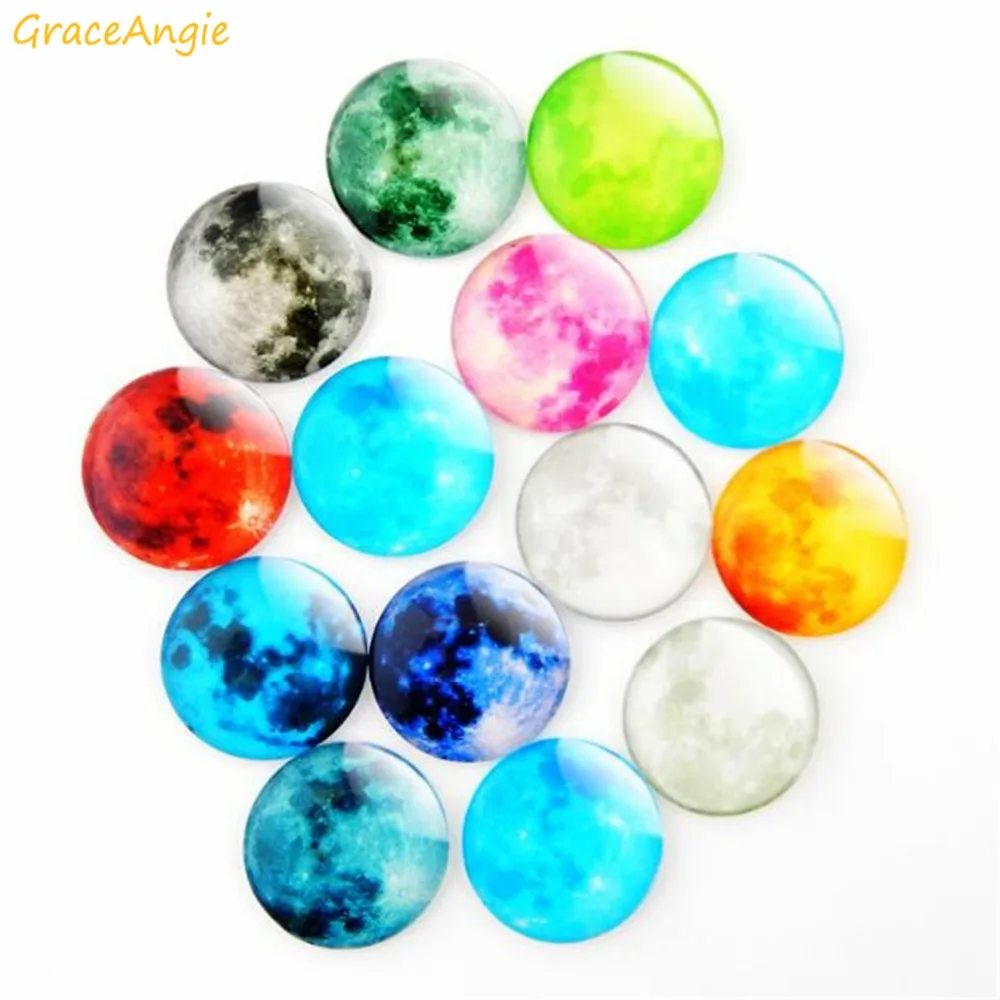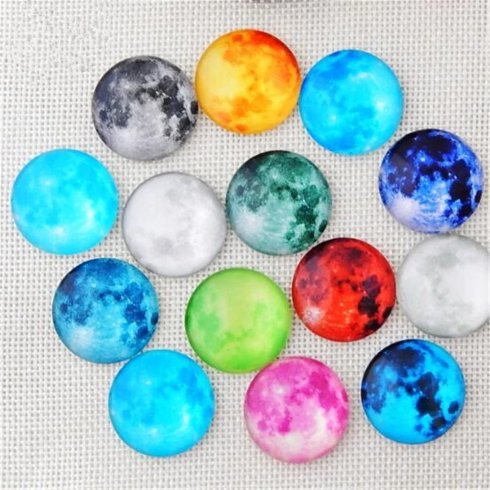 50pcs Mix Flatback Luminous time gem glass patch Glass Cameo 10-18MM moon pattern Cabochon Domed DIY Colorful Jewelry Base - купить по - купить