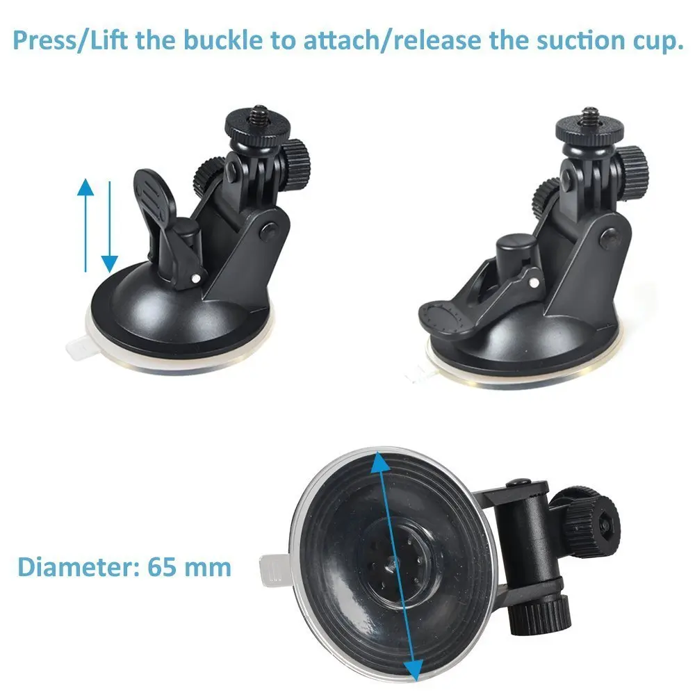 Особенности:● Мощное фиксирующее крепление на присоске поможет вам сделать уникальное видео и фотографию. Он предназначен для защиты видеорегистратора и поддержания адгезии на лобовое стекло во время воздействия. Он может быть надежно прикреплен к вашим окнам автомобиля, приборной панели других непористых поверхностей, прост в использовании.● Платформа камеры может вращаться около 190 градусов в направлении X и около 180 градусов в направлении Y. Вы можете свободно настроить камеру на свое любимое положение.● Прикрепляется к чистой и гладкой поверхности, чтобы получить максимальную прочность● Ремешок: Прикрепите присоске в нужное место, оберните провод вокруг зеркала заднего вида (или что-нибудь, что вы можете обернуть провод вокруг) и закрепите gopro. Характеристики:* Материал: пластик* Цвет: черный* Присоска Диаметр: 6,5 см/2,56 дюйма* Высота: 7,5 см/2,95 дюйма* Ремешок: изготовлен из нержавеющей стали, общая длина 60 см* Максимальный вес ручки: до 3 кг/6,6 фунтов* Применимые модели: (включая, но не ограничиваясь) Совместимость с Z-edge dash cam, Spy-Tec dash cam, Sony 4K, PowerShot A2500 и NEX-3NL/B, Fujifilm X-T1, samsung NX1100 Smart, Olympus OM-D E-M1, Panasonic LUMIX, Nikon Coolpix S7000, Canon Vixia HF R32, И с разъемом он также подходит для камеры серии Gopro Hero, серии SJCAM, Geekpro и т. Д. Посылка:1x Автомобильный держатель на присоске