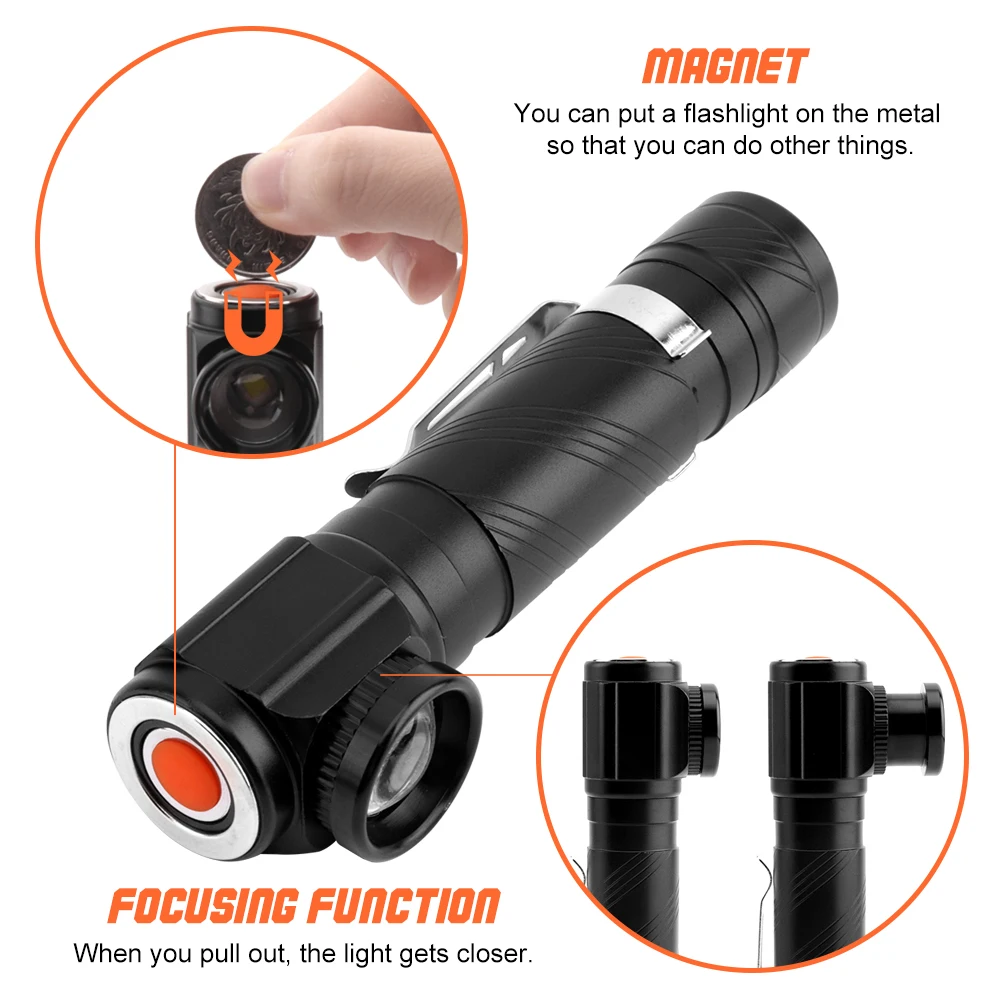 Купить BORUiT RJ 1190 T6 светодиодный налобный фонарь Zoom 4 режима Головной USB зарядное