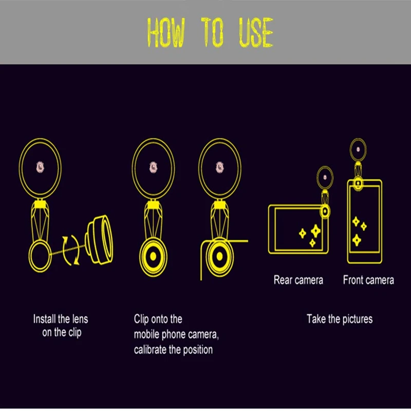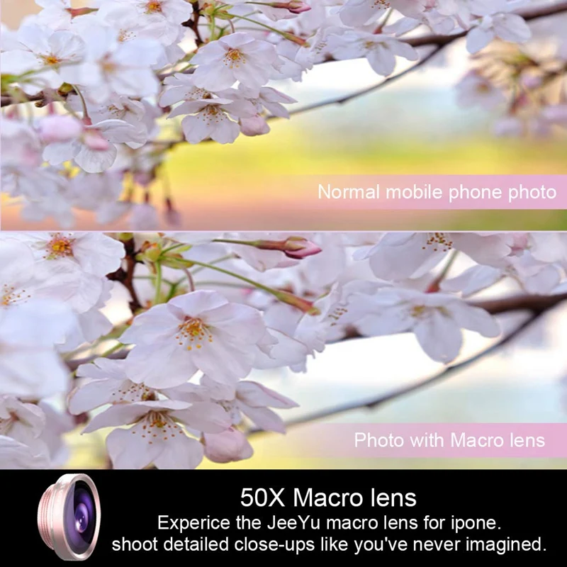Расширьте обзор на 140 градусов супер широкоугольный объектив, наслаждайтесь высококачественным техническим эффектом изображения. С линзой «рыбий глаз» вы можете увидеть изображение с диапазоном 180 градусов справа Слева на вашем телефоне. С макрообъективом the15X вы можете снимать фотографии на расстоянии 1/2 дюйма от вашего объекта. Он может делать фотографии небольших объектов (удаление широкоугольного объектива является макрообъективом).