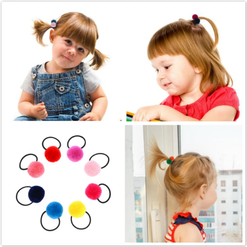 10 шт., партия из 5 пар Цветной Pom мяч резинки для волос для девочек; Прическа хвостик; Детские аксессуары, ленты для волос аксессуары для волос