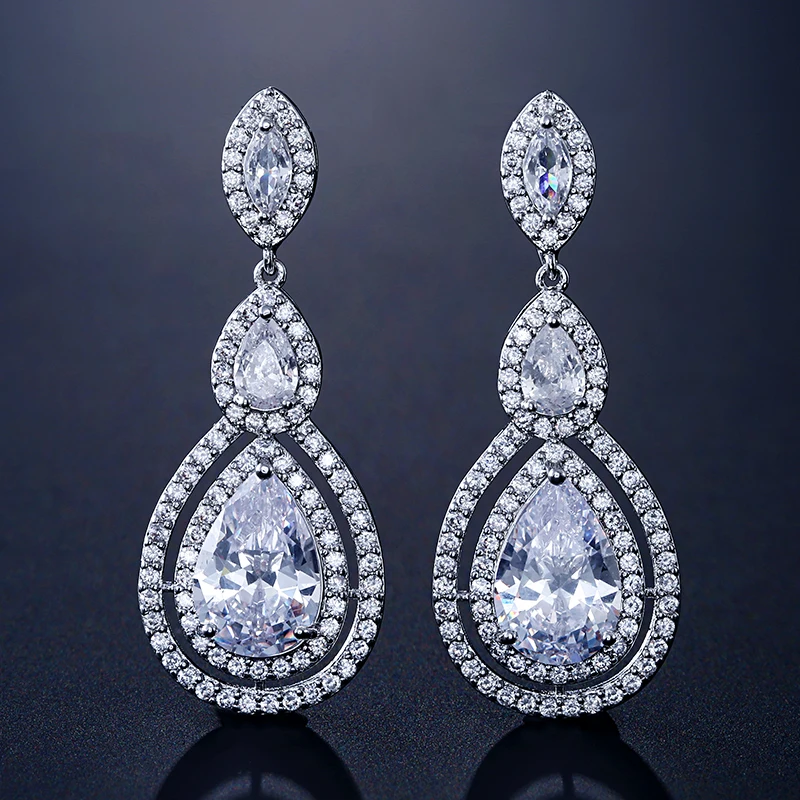 Отзывы о Модные длинные серьги-подвески UILZ из фианита в форме капли воды ювелирные