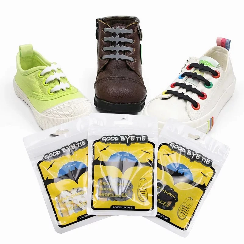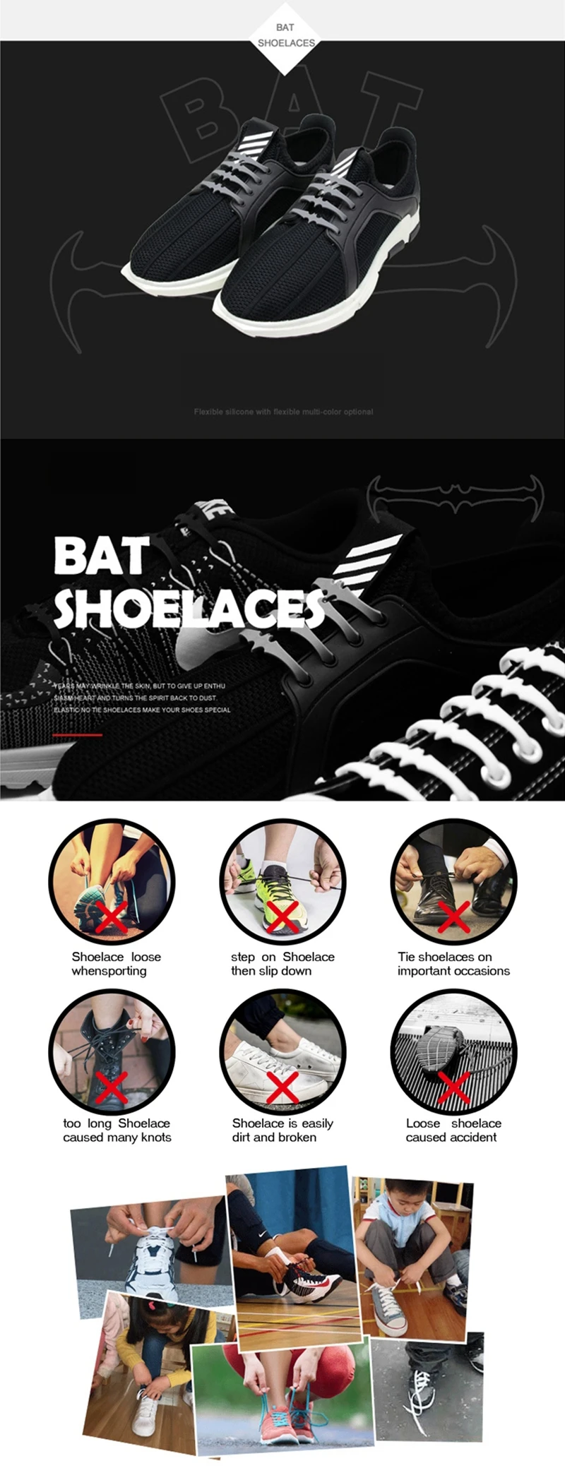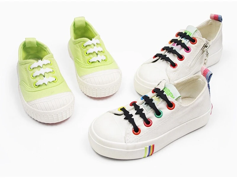 12 шт., силиконовые шнурки, эластичные, без галстука, шнурки для обуви, модные, в форме летучей мыши, резиновые шнурки для детей, для взрослых, унисекс, быстро ленивые шнурки