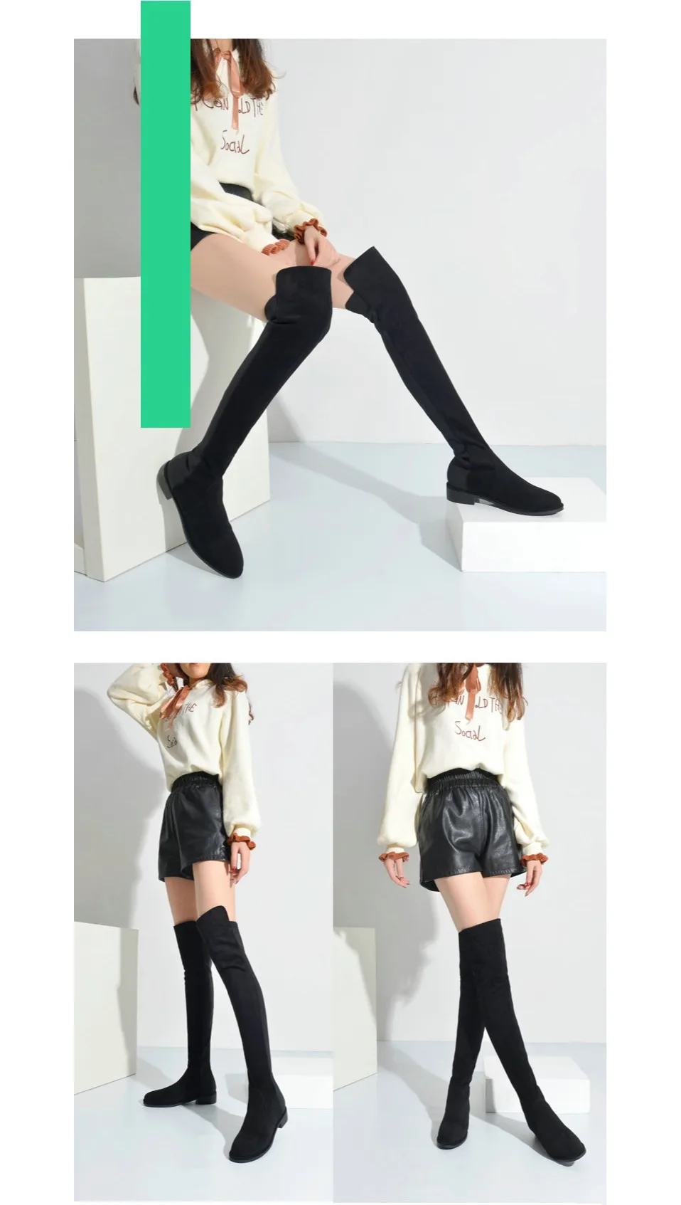 Обувь на плоской подошве Сапоги ботфорты Женские выше колен из флока и Pu - купить