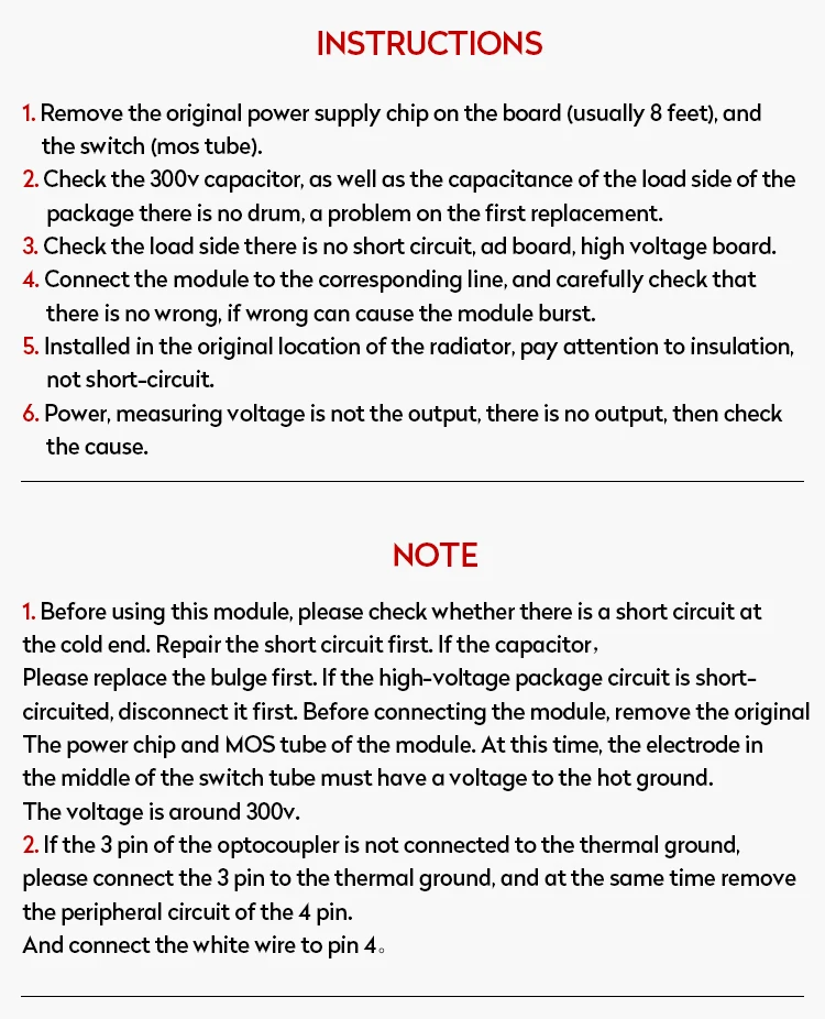 3 фута красная линия: VCC, модуль питания сбоку, затем отзывы обмотки терминала выпрямительный конденсатор после положительного, непрерывного питания, напряжение между 12-18 в.