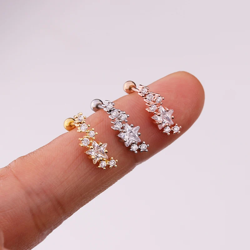 Sellsets 1 предмет CZ Звезда спирали серьги из нержавеющей стали козелка штанги - купить