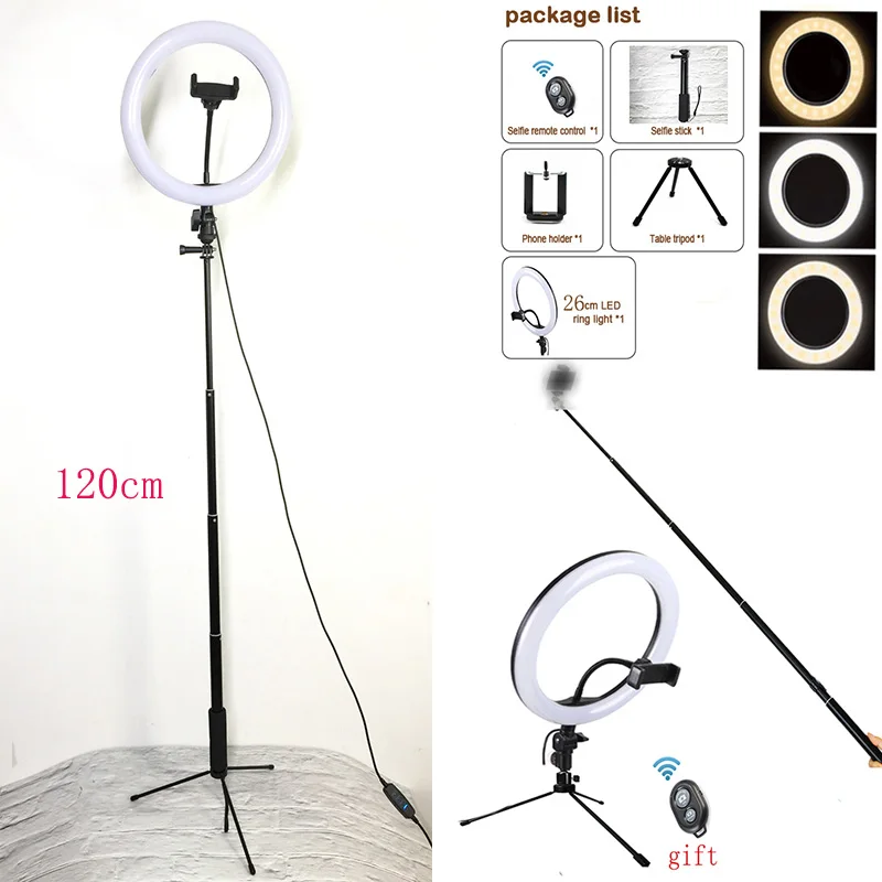 Купить 26 см кольцо светодиодное Освещение фотография led селфи свет 3 шага цвета белый и
