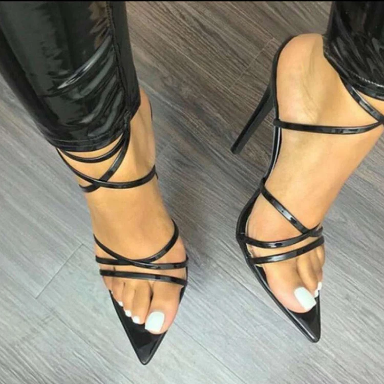 Женские босоножки; Женская обувь; Женские туфли-лодочки с открытым носком и перекрестной шнуровкой на высоком тонком каблуке; Привлекательные Летние босоножки; Свадебные туфли; Цвет Черный; 2019