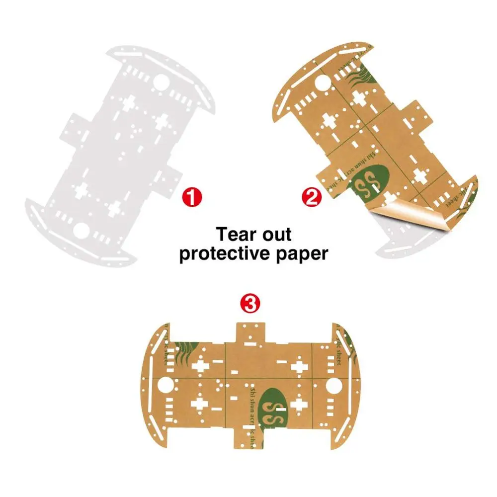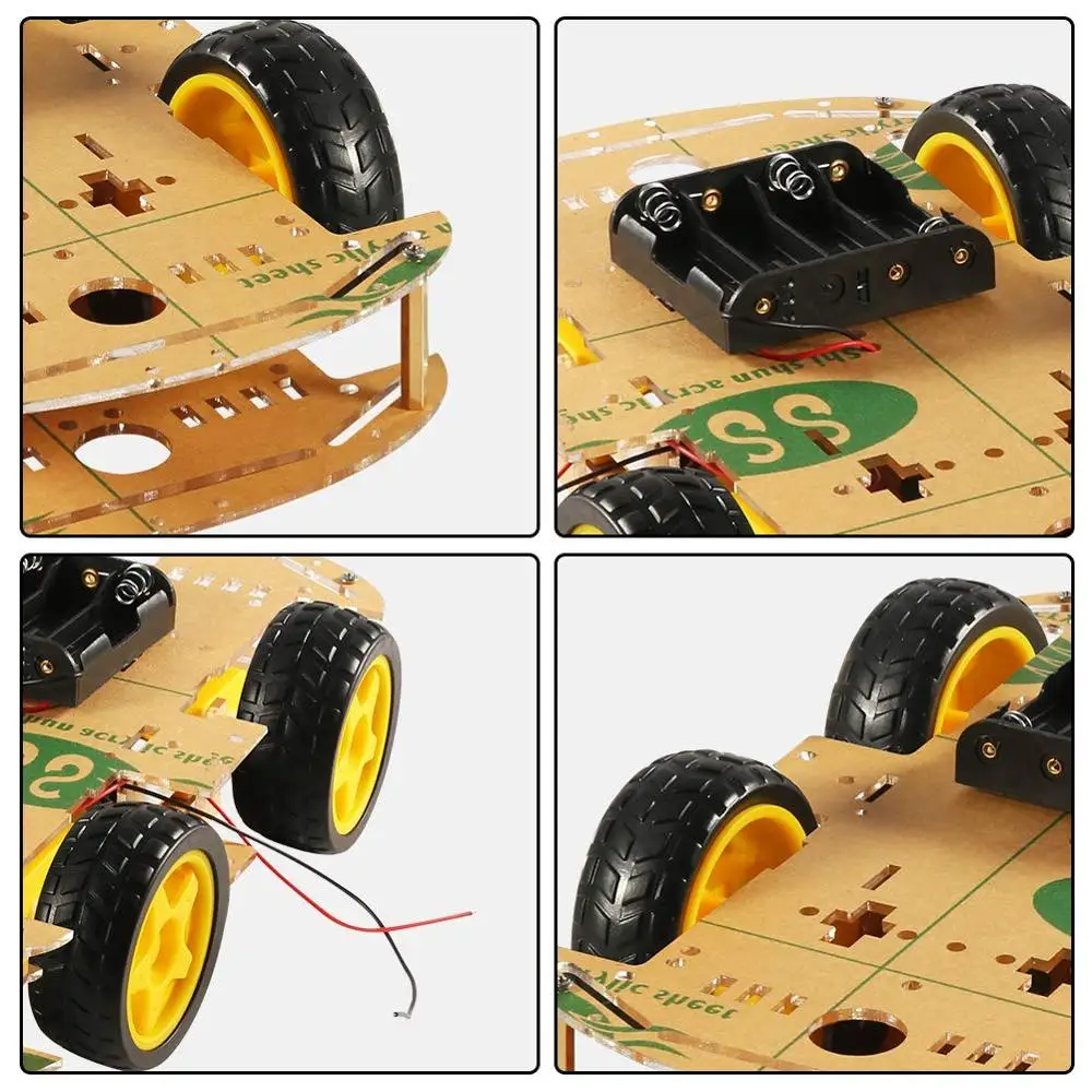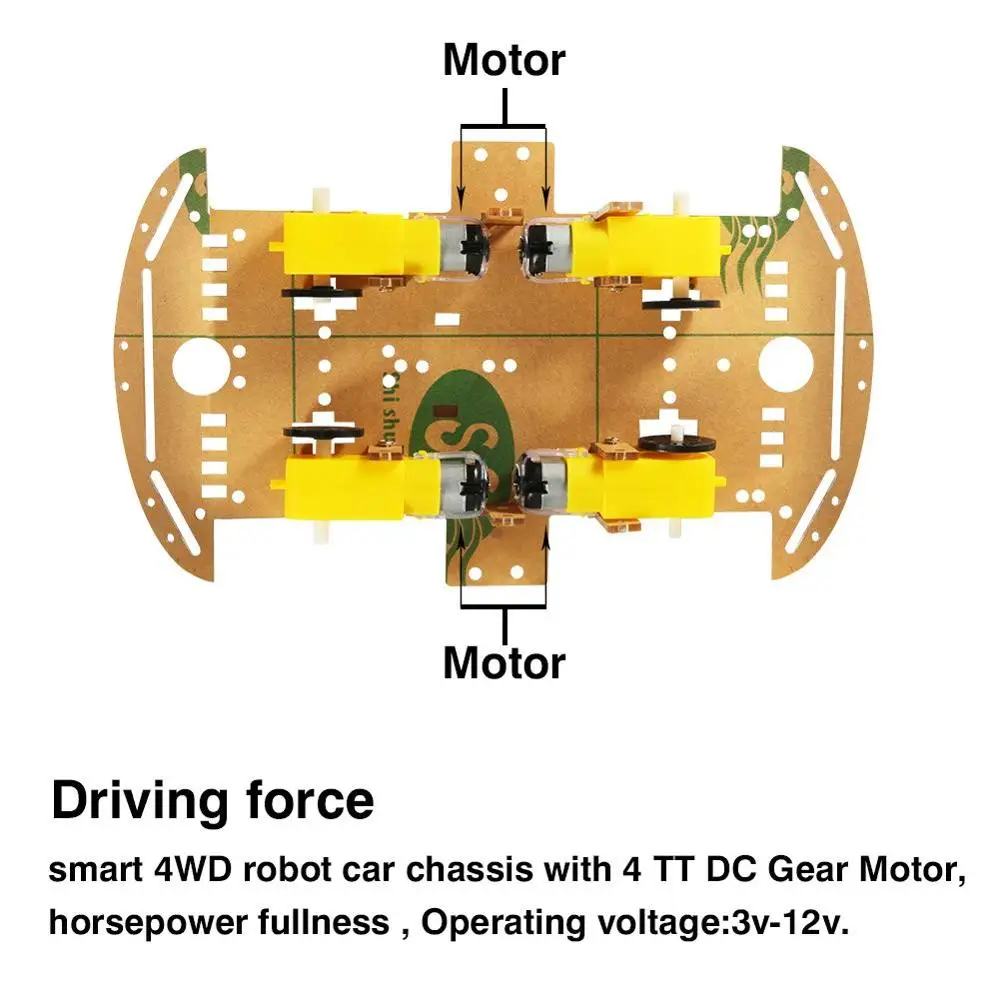 Характеристика: Простая механическая структура, легко устанавливается. Умный робот-автомобиль с кодовым диском, идеально подходит для DIY. Используется для измерения расстояния, скорости. Этот автомобиль-кодировщик тахометра. Можно использовать с другими устройствами для реализации функции отслеживания, избегания препятствий, тестирования расстояния, тестирования скорости, беспроводного дистанционного управления. Шаги установки: Шаг 1: вставьте застежку в шасси hte после отрыва желтой защитной пленки шасси, застежки и кодового колеса. Шаг 2: Установите кодовое колесо и закрепите двигатель на шасси. (Внимание, медный лист ведущего провода двигателя должен быть лицом наружу, с той же стороны колеса.) Шаг 3: Прикрепите двигатель к шасси, затем вставьте и затяните винты. Шаг 4: вставьте винты и зафиксируйте емкость аккумулятора. Шаг 5: вставьте распорку и затяните 8 винтов, чтобы зафиксировать молоток. Удерживайте плотно и вставьте двигатель (защитный крепеж) к колесу.