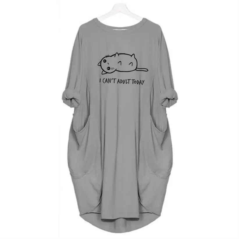 Купить Женское платье с карманами винтажное летнее макси принтом кошек и букв одежда в