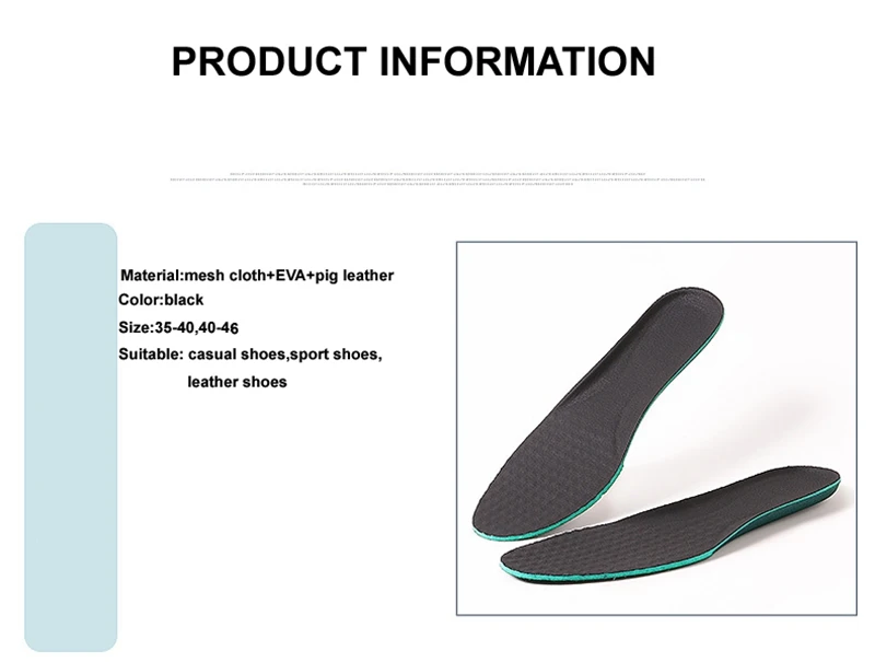 Добро пожаловать в наш магазин Дорогие друзья, При размещении заказа, пожалуйста, обратите внимание на следующие моменты! Название: Спортивные Повседневные стельки Материал: свиная кожа + Foamon памяти Функция: всасывающие/впитывающие стельки Сезон: Весна, Осень, Зима, Лето Размеры, большие размеры: 35-40 ярдов (22,5-25,5 см), большие размеры 41-46 ярдов (26-28,5 см) Доставка: Бесплатная доставка В комплект входит: 1 пара стелек Примечание: Вы можете самостоятельно отрезать стельку нужного размера. Два способа резки стельки: 1. Измерьте длину стопы, затем найдите размерную линию на стельке и порежьте ее немного дольше, чем нога. 2. Используйте подходящий размер стельки, поместите его на новую стельку, затем медленно порежьте (Вы также можете добавить примечание к вашему заказу, чтобы сообщить нам свои вопросы и требования)
