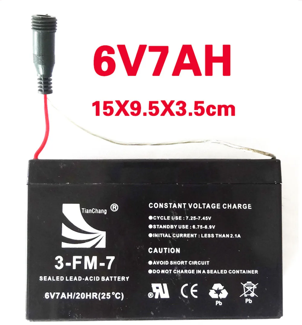 6V7AH Battery :Charging can be done again in about 4 months.Battery size 15X9.5X3.5cm
