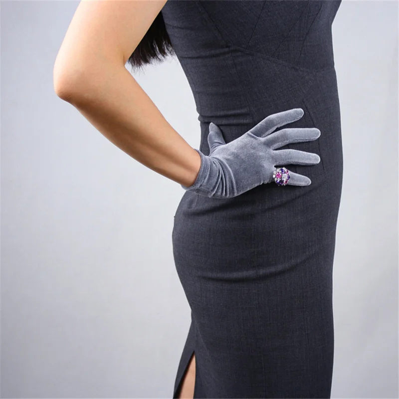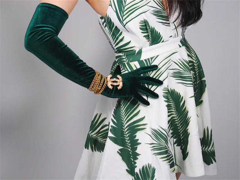 Женские бархатные перчатки 22 см короткие зеленые бархатные Зеленые модели высокие эластичные бархатные золотые бархатные сенсорные перчатки RLS022