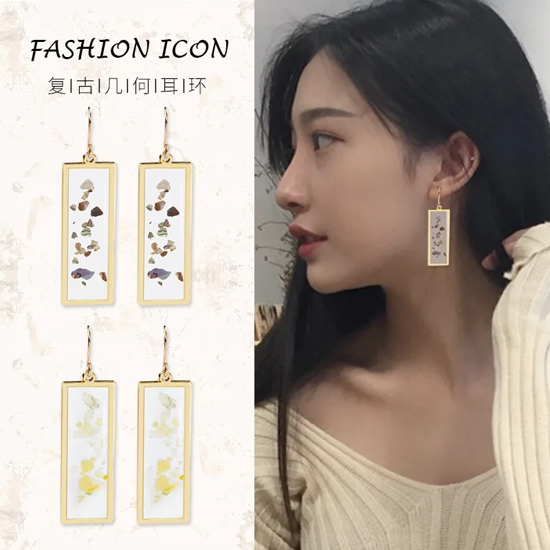 Модные висячие серьги с прозрачными квадратными камнями в стиле корейской моды - купить