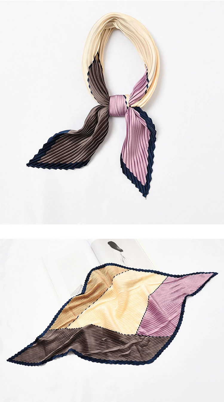 Купить Стильный и шикарный модный цветной плиссированный квадратный шелковый шарф для