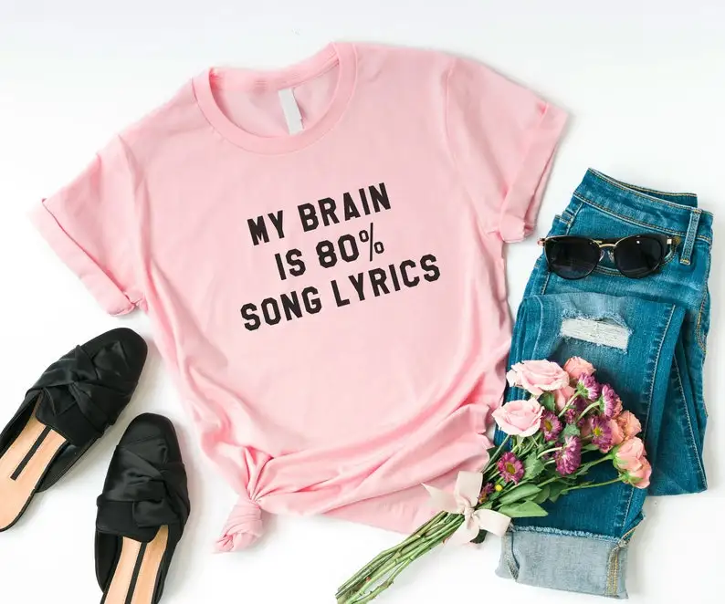 Отзывы о Забавная графическая футболка Skuggnas My Brain Is 80% с текстом песни хлопковая подарок