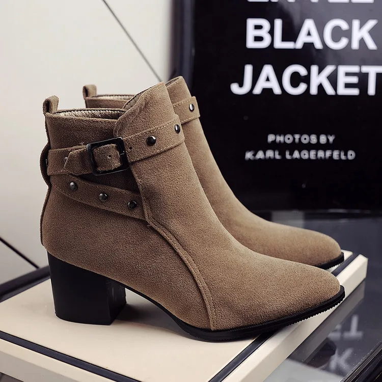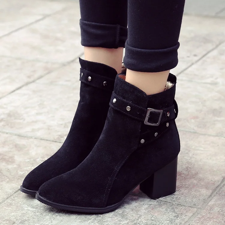 Ботинки с острым носком на толстом каблуке большие размеры Обувь - купить