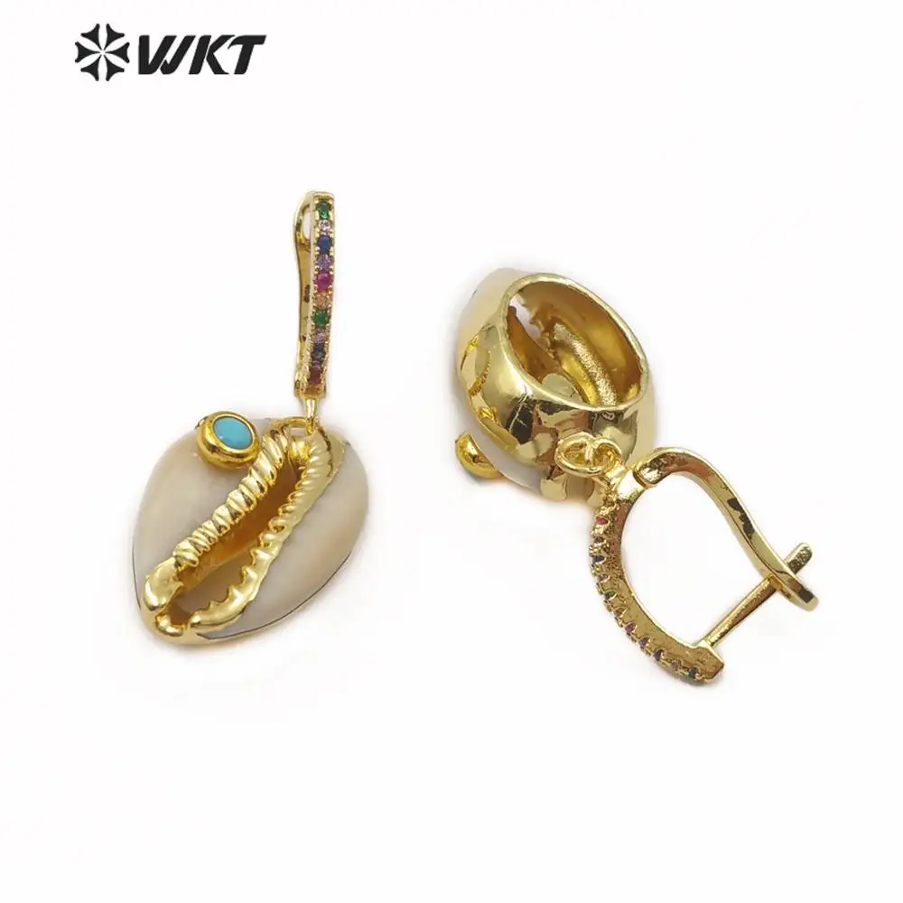 WT-E538 Каури, серьги, ювелирное изделие, белый и золотой Цвет Каури с камнями, очаровательные, модные серьги для женщин натуральный Sea Shell серьги