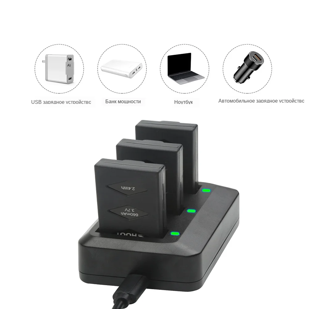 3 шт 3,7 V 660 mAh Дрон батарея с тремя USB зарядное устройство для попугая