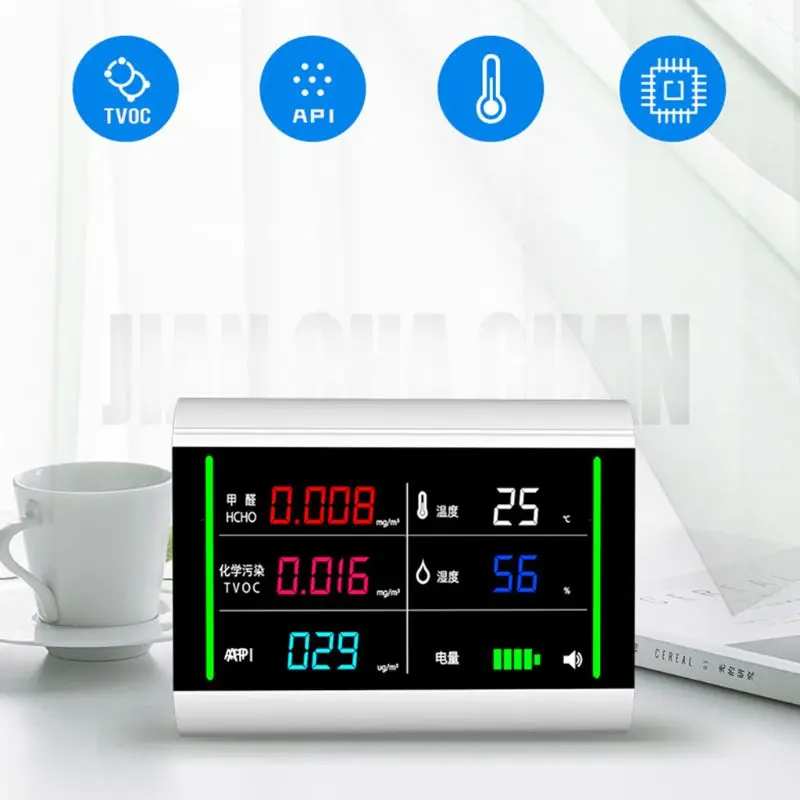 Отзывы о 5 в 1 USB перезаряжаемый датчик качества воздуха бензол HCHO TVOC жк цифровой дисплей