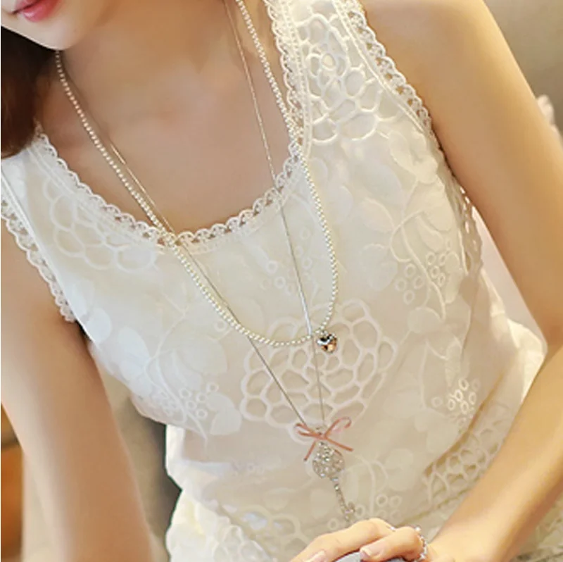 Женская блузка без рукавов Летний шифоновый кружевной топ блузки женская одежда - купить
