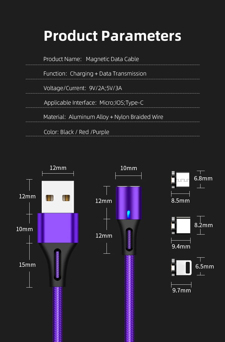 Название: sunphg Магнитный кабель для передачи данных Поддержка интерфейс: разъем с-типа/microusb/ios Функция: зарядка + передача данных Материал: нейлоновая оплетка + алюминиевый сплав Цвет: черный/красный/синий/серебристый Sunphg позволяет использовать один кабель с разъемом спецификации usb Type-c, microusb и ios советы для всех ваших устройств. Какие 3A означает? Максимальный ток провод 3A, который поддерживается только с 9V QC3.0 зарядное устройство для TYPE-C устройств. Для microusb или кабель ios, максимум составляет около 2.4A, потому что micro usb или ios устройства могут не поддерживать 3A в настоящее время. Кроме того, только в том случае, когда ваше устройство с интерфейсом type-c с малой мощностью (ex. 10%) телефон зарядное устройство, автомобильное зарядное устройство будет отображаться на ваш телефон во время зарядки. Почему у каждого из нам нужен Магнитный кабель? 1, быстро перемещать шнур из друг к другу, usb-порт заряжайте устройства coneniently. 3 советы для apple с разъемом lightning, usb-c и micro usb, в том случае, если вы имеете несколько советов, вам не нужно брать пыленепроницаемый наконечник с вашего телефона в тех случаях, когда вам нужно для зарядки других устройств. 2, во избежание повреждения провода в том случае, если устройство и провод получить Jostled. Кабель будут высоко оценены после отрываться, и при этом не повредить поверхность шнур или устройства. 3, с помощью одной руки слепой во-вторых, сильный магнит для телефона Вам просто нужно одной рукой возьмите кабель магнитно поглощается наконечник подключен в телефоне.
