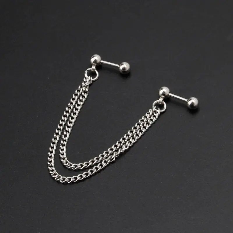 1 шт Панк мяч гвоздик для пирсинга в хряще Кафф Обёрточная бумага Двойная Цепочка - купить