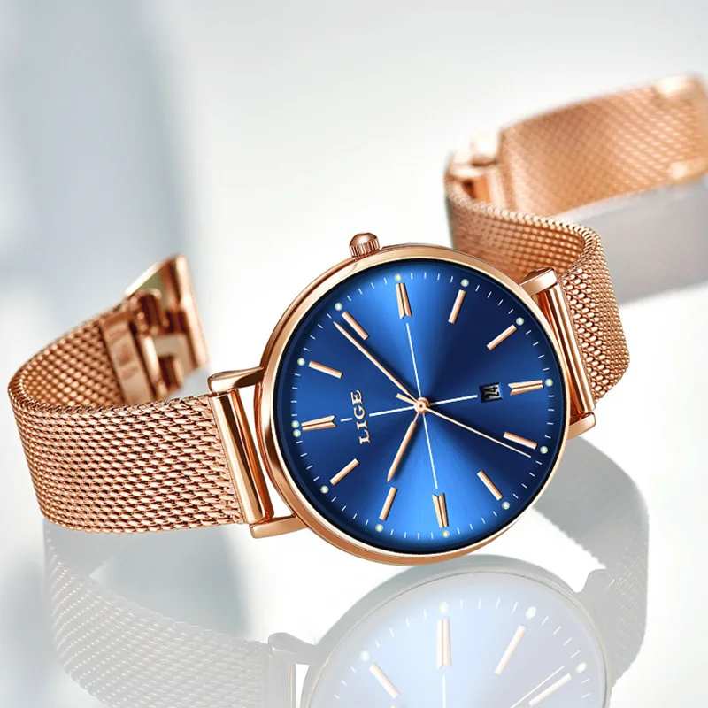 Купить Женские кварцевые часы LIGE розовые золотые синие для офиса роскошные девушек