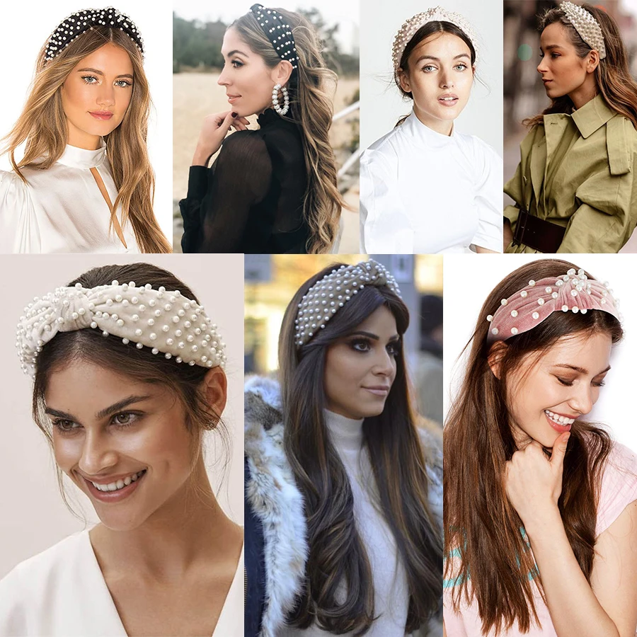 Моланс бархатный узел-ободок с искусственными жемчужинами переплетенный бисером широкие петли для волос аксессуары девочек - купить