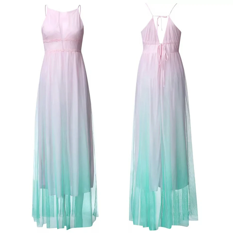 Женское вечернее платье макси до пола, розовое, синее длинное платье принцессы с лямкой на шее без рукавов, элегантное Сетчатое платье с высокой талией для свадьбы, лето