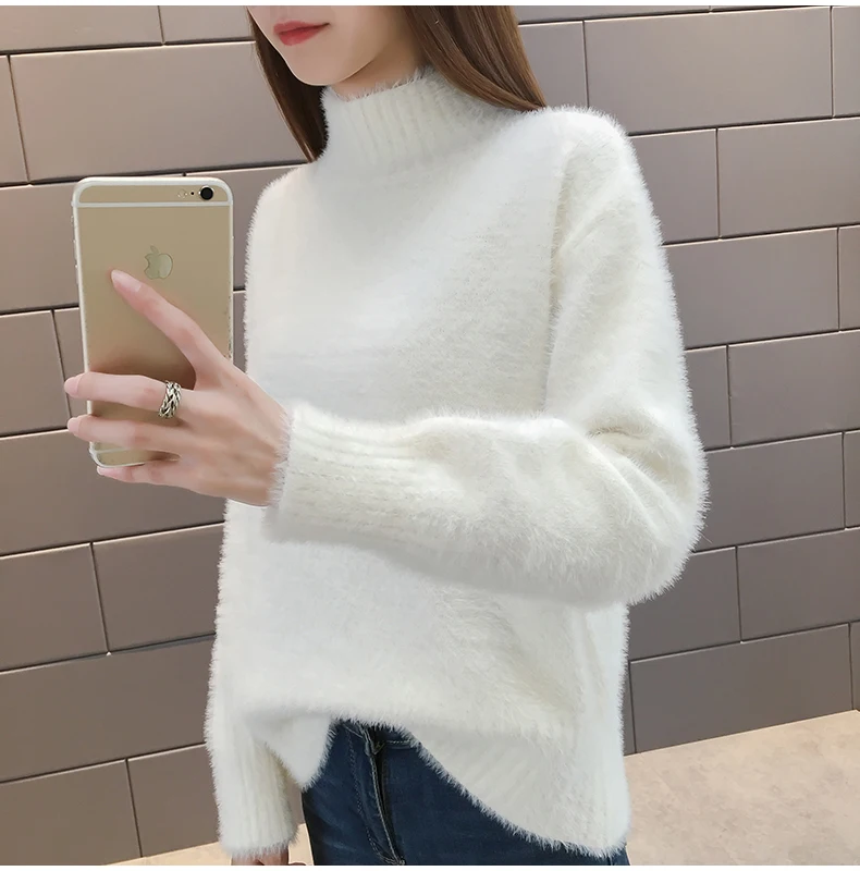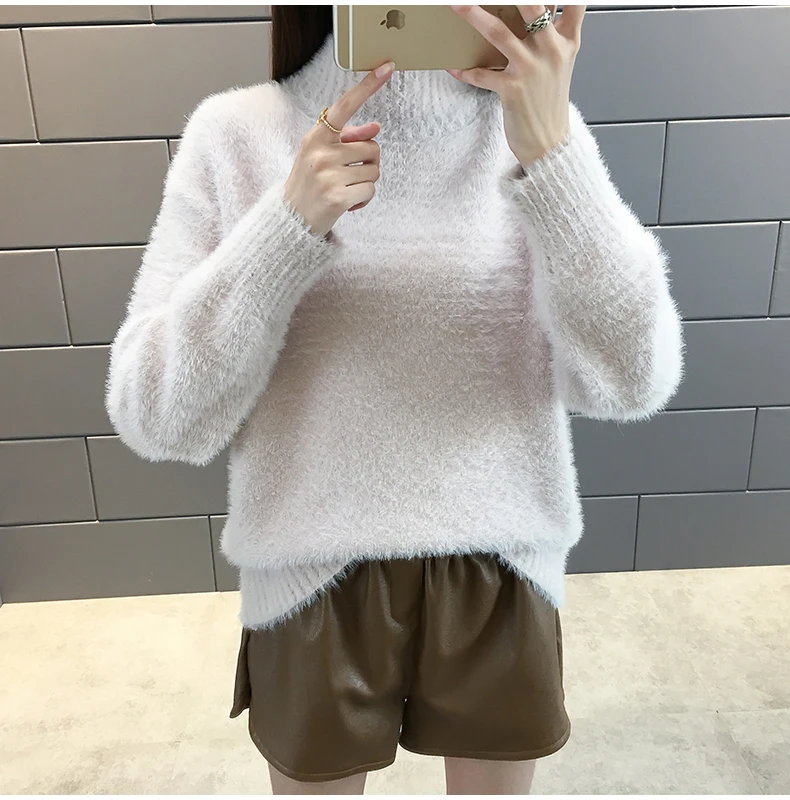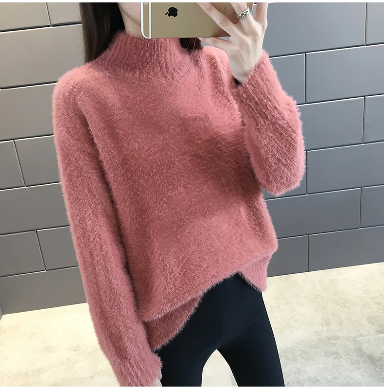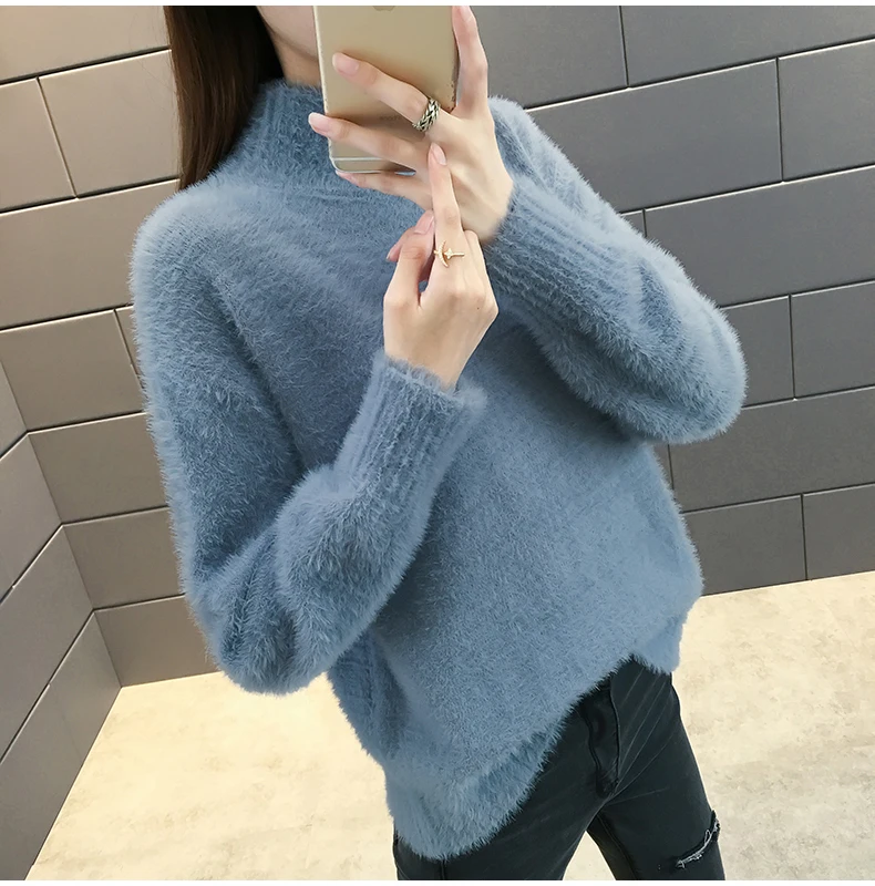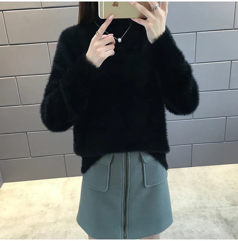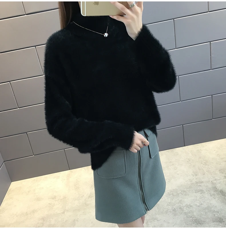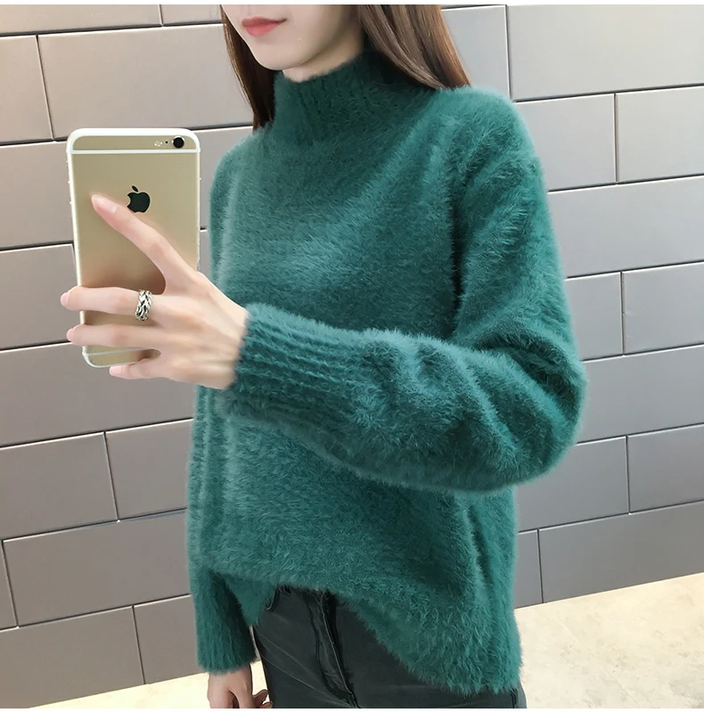 BUENOS 2019 Зимние новые модные плотные теплые с высоким, плотно облегающим шею воротником, свитер для девочек с длинным рукавом на каждый день сплошной Цвет тонкий Простой пуловер