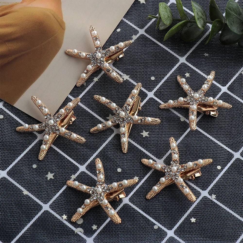 Модная заколка для волос со стразами и жемчугом Морская звезда, Заколки для женщин и девочек, заколки для волос, свадебный головной убор, летние пляжные украшения для волос