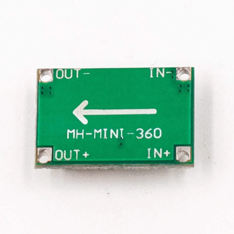 Название модели: Mini-360 (Ультра маленький размер DC-DC синхронный выпрямитель понижающий модуль)Свойства модуля:Неизолированный бакВыпрямление: СинхронныйВыпрямлениеВходное напряжение:4,75 в-23 вВыходное напряжение:1,0 В-17 вВыходной ток:Снижение значения 3A, длинный 1.8AЭффективность преобразования: 96% (максимум)Частота переключения: 340 кГцВыходная пульсация:30 мВ (без нагрузки)Регулирование нагрузки: ± 0.5%Регулирование напряжения:± 2.5%Рабочая температура:-40 по Цельсию + 85 по ЦельсиюОсобенности: Используйте интегрально формованный силовой индуктор и синхронный чип управления выпрямителем, меньший и более эффективный.