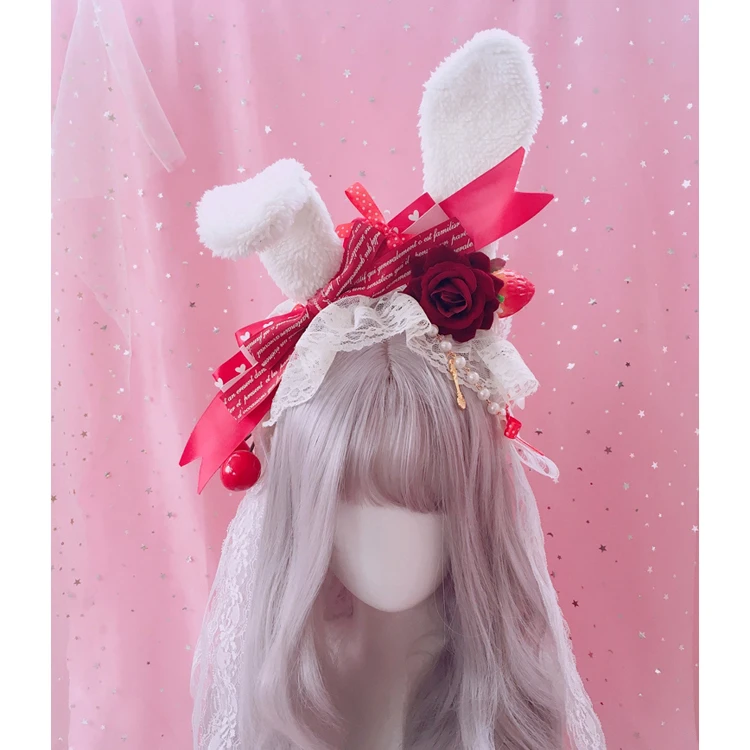 Kawaii Плюшевые кроличьи уши KC головной убор бант кисточки застежка для волос - купить