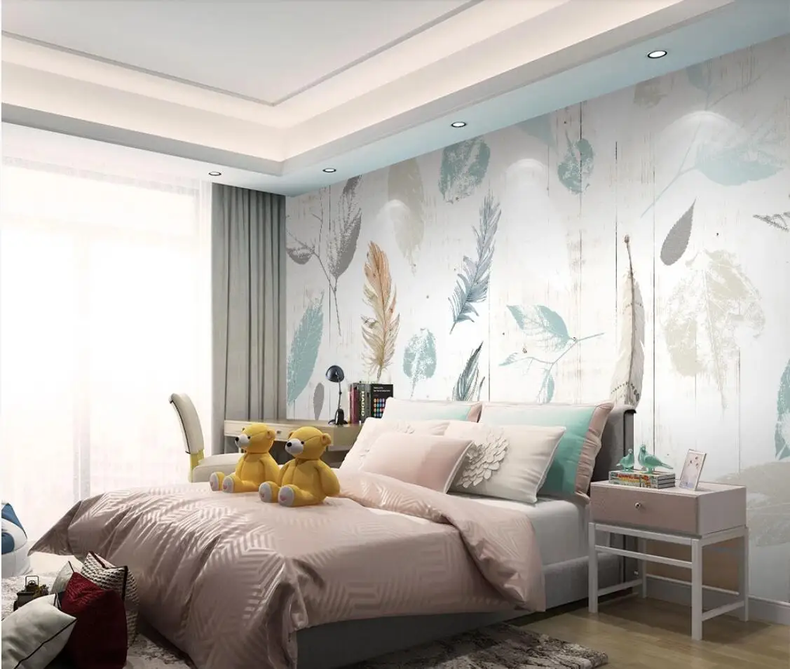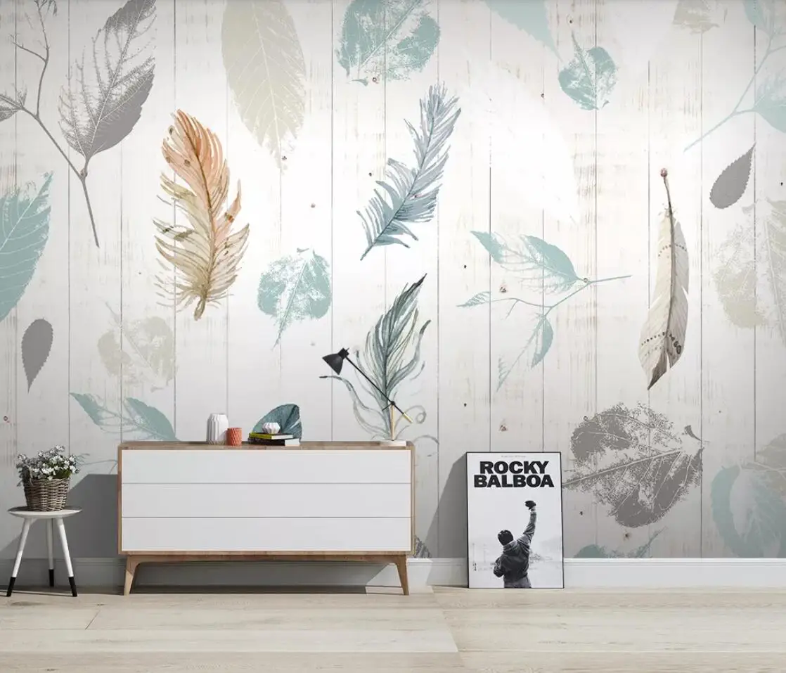 Купить Настенная бумага с перьями и фламинго художественная настенная живопись