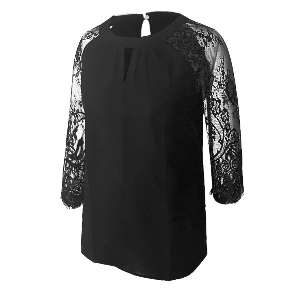 Женская Однотонная футболка с круглым вырезом и длинным рукавом больших размеровОсобенности:
