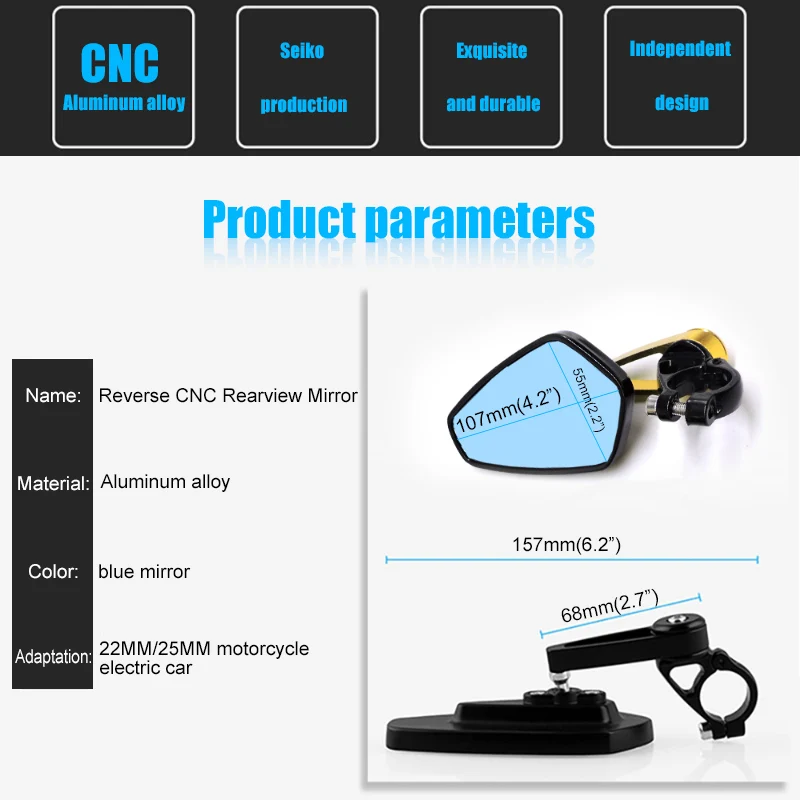 Название: зеркало заднего вида с ЧПУ Материал: Алюминий из алюминиевого сплава Цвет: красный, синий, золотой, черный, серебристый Адаптация: 22 мм/25 мм Электрический мотоцикл