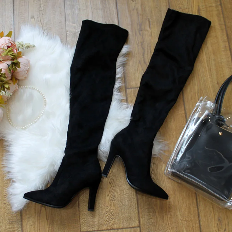 Женские облегающие ботфорты RIZABINA высокие Стрейчевые сапоги на высоком каблуке - купить