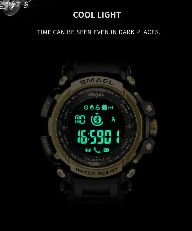 SMAEL цифровые часы мужские Смарт часы умные часы Android iOS пульсометр 180 дней Срок службы батареи IP68 всегда на Displa