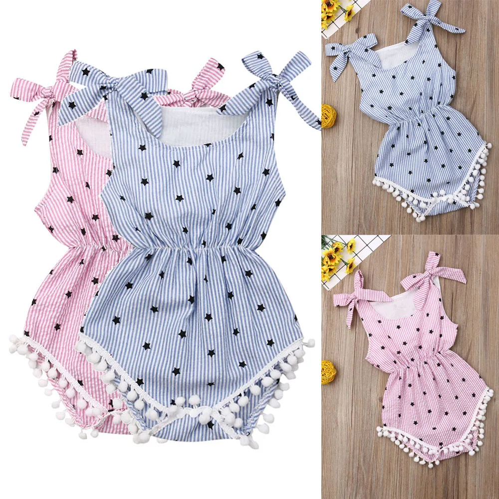Купить Хлопковые комбинезоны с помпонами и принтом в виде звезд для маленьких девочек